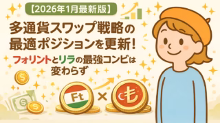 FXのスワップ投資で「1年で元本回収」を目指すには、単一通貨ではリスクが高すぎます。本記事では、複数通貨を組み合わせた多通貨スワップ戦略の仕組みをシミュレーションし、リスクとリターンの最適化方法を解説します。