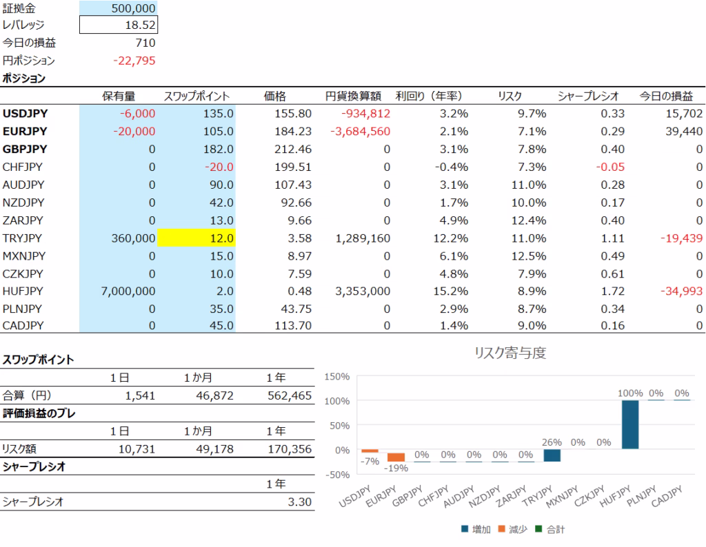 🔹 多通貨スワップ戦略にトルコリラ導入!エクセルファイルを使ったポジションの決め方も解説